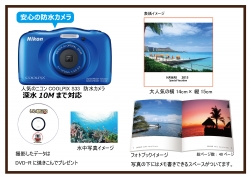 カメラは水中で誰でも簡単に撮れる人気のニコンCOOLPIX S33。